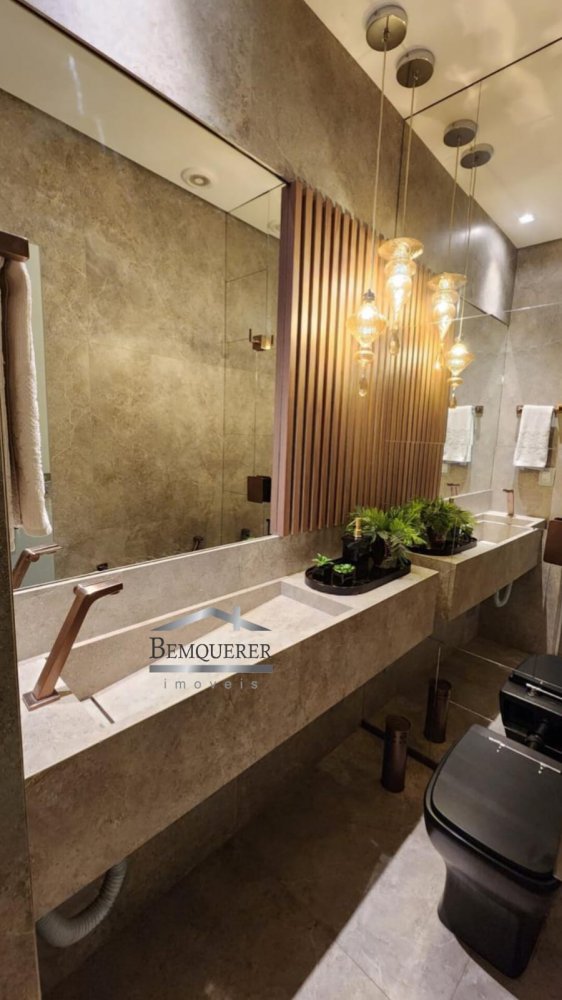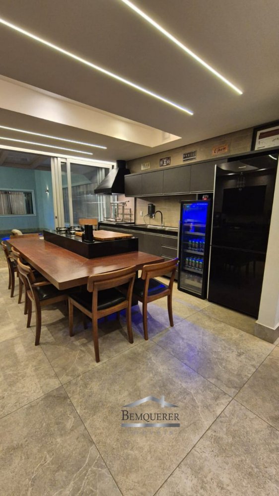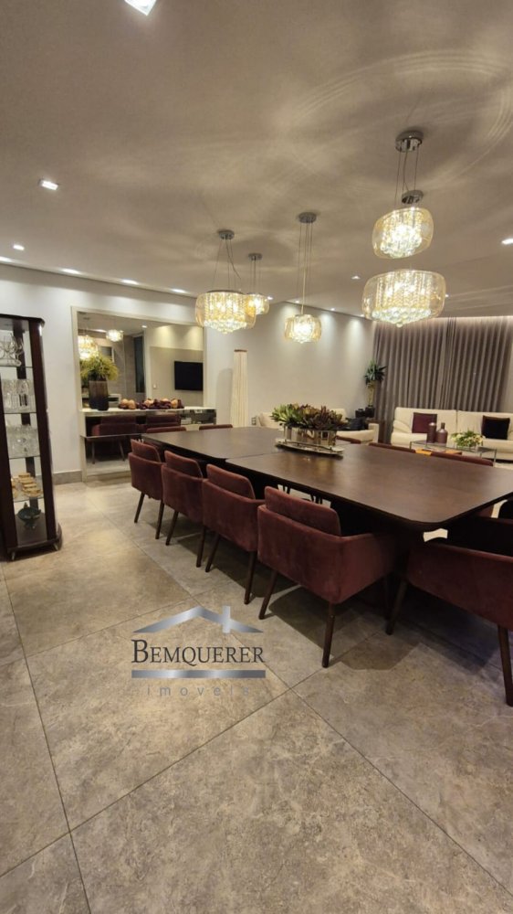 A decoração é um espetáculo à parte, com mobiliário fixo elegante que inclui aparadores personalizados, cristaleiras embutidas e painéis de madeira decorativos. A área gourmet e a sala de estar contam com preparação para ar-condicionado, permitindo uma instalação fácil e sem reformas.
