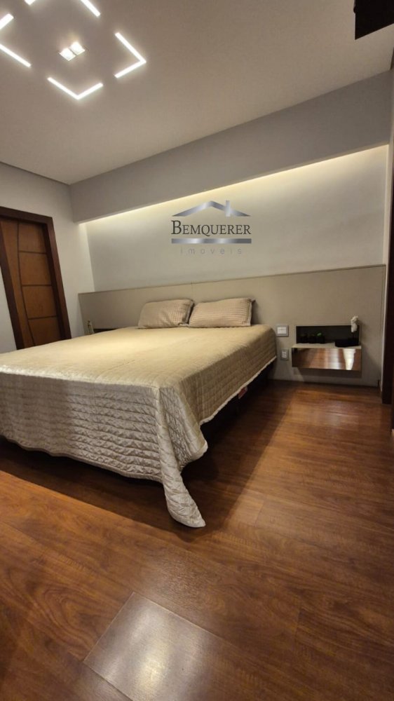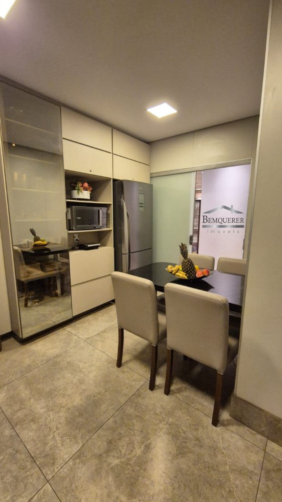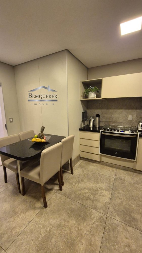 A casa possui uma funcional cozinha independente, perfeita para o dia a dia, repleta de armários e uma mesa para refeições rápidas. Com 4 quartos espaçosos, a suíte do casal se destaca, oferecendo closet masculino e feminino, ar-condicionado e uma cabeceira sob medida para otimizar o espaço.