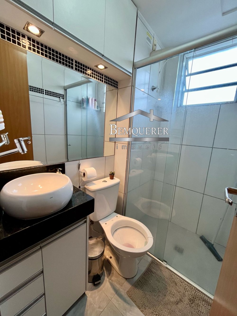 - Banheiro social com box e espelho
